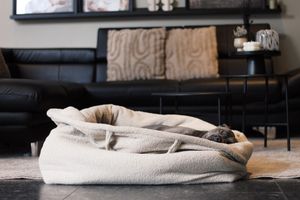 Hinweis: Volumenvlies ist kein Schaumstoff und es verliert mit der Zeit und durch das Waschen an Stabilität, das liegt in der Natur der Sache. Ein Hundeschlafsack, der „nicht mehr steht wie am Anfang“ ist kein Reklamationsgrund und könnte auch an der Schwerkraft als auch den Proportionen des Produktes liegen. Ein M-Büddel "steht" besser als ein XL-Büddel, der wesentlich breiter ist.